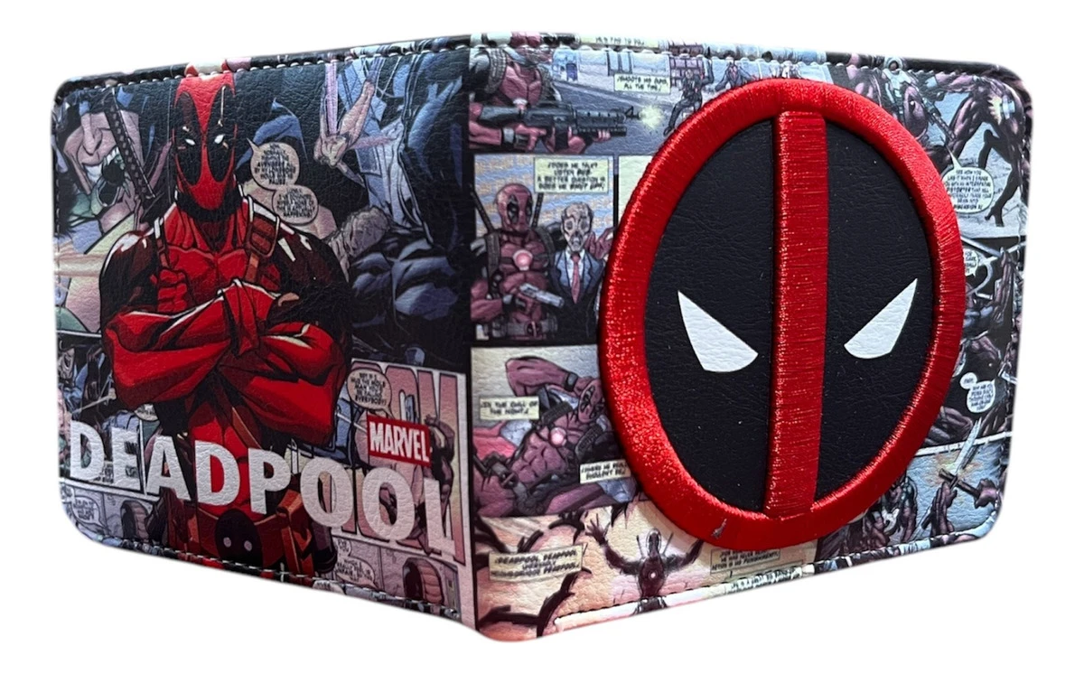 BILLETERA DE ECOCUERO CON DISEÑO BORDADO DEADPOOL.